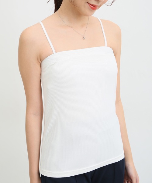 人気の定番インナー♪ 【デザイン】 フィットシルエットで汎用性の高いデザイン。 【素材・機能】 伸縮性があり、吸水速乾にも優れた着心地のよい綿混テレコ素材。 肩ひもは取り外し可能で、胸元と後背ゴムでしっかり止まる安心感。 紫外線対策ができる「UVカット」機能付き。 【スタイル】 シャツやワンピースのインナーにもぴったり! 脇ブラや谷間見えが防止できて、オールシーズン大活躍。 ※肩ひも長さ:全サイズ32(肩ひも調節可・取り外し可) ※胸元・後背部分ゴム 品番:585-13-8096