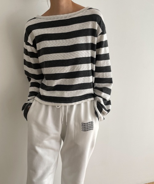 デザイン ワイドボーダーがコーディネートのアクセントに! 首元はボートネック仕様でデコルテラインを見せ、女性らしい印象に。 素材 さらりとしたコットン素材でロングシーズン活躍。 コーディネート デニムと合わせた定番のカジュアルスタイルや、スウェットパンツと合わせたラフなデイリー使いまで。 やや短めの丈感なので様々なボトムスと相性が良く、幅広いスタイリングにおすすめの1枚です。 El mar(エルマール) El mar はスペイン語で『海』 海に向かうときはだれでもワクワクする。 洋服を選ぶとき、袖を通すとき、 同じように心が踊るアイテムを提案したい。 そんな『ワクワク』な気持ちを込めて El mar はデビューしました。 ------------------------------------- 生地の厚さ:厚い〇〇●〇〇薄い 伸縮性:あり 透け感:なし 裏地:なし 光沢:なし 水洗い:可 ------------------------------------- 取扱い:洗濯機 濃色は色落ちする可能性がありますので、他の物とのお洗濯はお避けください。 生成り・淡色には蛍光増白剤の入っていない洗剤をご使用ください。 長時間の水への浸漬はお避けください。 洗濯後は速やかに形を整えて陰干しをしてください。 水洗いの後の乾燥機のご使用はお避けください。 この商品は素材の特性上、ピリング(毛玉)の発生しやすい商品です。ご了承ください。 クリーニングネットを使用してください。 アイロン掛けの際は、あて布をご使用ください。 -ATTENTION- ※検品基準が日本とは異なり、海外製品はメーカーの検品基準が甘く、縫製が甘い場合がございますが、全てメーカー基準を満たした商品となっておりますので、予めご了承の上お買い求め下さい。 ※末永く愛用頂く為に、アテンションタグを必ずご確認の上、着用又はお取り扱い下さい。 ※商品の写真はサンプル品を撮影している為、実際の商品とは仕様や加工、加工によるダメージ、サイズ等が若干異なる場合もございます。 ※屋外での撮影画像は、光の当たり具合で色味が異なって見える場合があります。詳細画像をご参照ください。