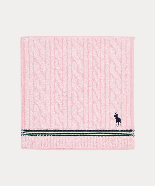 質感のあるコットンテリー、ケーブルニットのモチーフ、シグネチャーのポニー刺繍を組み合わせたハンカチーフ。 ・右下隅にシグネチャーのポニー刺繍 ・洗濯機洗い可 ※商品の色味は、光のあたり具合など諸条件により色感が多少異なって見える場合がございますので予めご了承下さい。