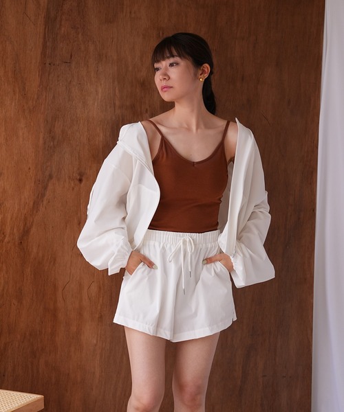 レジャーシーンに活躍するフード付きパーカーとショートパンツの2点セットアイテムです。シャカシャカとした素材感で軽い着心地なのでビーチやプールでのちょっとした移動にぴったりの1着◎パーカー、ボトムスそれぞれにポケットがついているので機能面もばっちり。小さく折りたためるくらい軽い生地でシワになりにくいので持ち運びしやすいのもうれしいポイント♪レジャーシーンはもちろん、タンクトップやノースリーブトップスの羽織としてデイリーにも活躍くれる優秀アイテムです◎商品補足厚さ:普通光沢:なし伸縮性:なし裏地:なし透け感:なし※着水は非推奨です。※UV加工は施されておりません。【IAMUSE】「自分自身を楽しませるような1着を」特別な1着もいいけれど、毎日着たい1着を目指して。女性の毎日の〝楽しみ“に寄り添い、溶け込めるアイテムを提案いたします。シンプルながらもサイジングやテキスタイルはトレンド感のあるスタイルに。着回しのしやすいアイテムを提供いたします。■お気に入り登録について完売カラーの再入荷通知や、完売間近の通知、セールの通知を受け取ることができます。■ブランドお気に入り登録について新商品や再入荷など、いち早くブランドのお得な情報を受け取ることができます。取扱注意事項※サイズは、測定方法と測定者によって多少の誤差がありますのでご了承下さい。また体型によって、サイズ感に個人差がございます。(平置き採寸)※商品によってはシワがつきやすく、畳ジワや折りジワなどが強く出る場合がございます。※生地の素材や染色により、においが気になる場合がございます。※レースやシアーアイテムなどは繊細な素材を使用しているため、摩擦を避けお取り扱いにご注意下さい。※お洗濯の際には、洗濯専用ネットをご使用の上、色移りを避けるために個別での洗濯ををお勧め致します。※着用、お取り扱いの際は、商品についている品質表示とアテンションを必ずご確認下さい。※掲載画像は撮影環境により実際の色味と異なる場合がございます。※生産時期によって若干の色味、原産国が異なる場合がございますが、品質には変わりございませんので予めご了承ください。