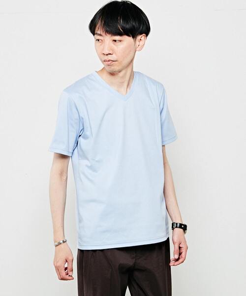 しなやかで上品な光沢のあるスムースシルケットを使用しています。 スタイリッシュな雰囲気のVネックTシャツです。 <素材について> ・毛羽の少ないコンパクト原料を使っているので上品な光沢感が魅力です。 ・適度にしなやかで厚みをあり透け感が気になりません。 ・UVケア性があり、コットンの中では冷感性がある素材です。 <デザインの特徴> ・適度な深さのVネックなので、艶っぽく着用する事が出来ます。 ・素材のグレード感があるので一枚でもサマになる主役級の1枚です。 <サイズ感・シルエットの特徴> ・細身のシルエットなのでインナー使いでは嵩張らず着用出来、単独では色気のあるムードでスタイリング出来ます。 <サイズ表記> 2=S、3=M、4=L、5=LL ******************** 透け感:なし 伸縮性:あり 光沢感:あり 生地の厚さ:普通 ********************