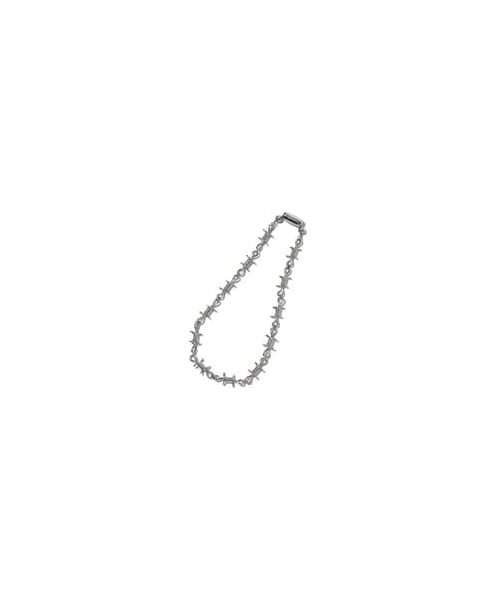 パンキッシュな有刺鉄線をモチーフとし、リアリティを追求しながらストリートファッションとの親和性も高めたバランスに。一見ハードな存在感を見せながらもスタイリングを問わず活躍する一本。マテリアルにはステンレスを用いたアレルギーフリーの仕上がり。中留めパーツにはglambロゴを刻印。同モチーフでAbatis Braceletも展開。