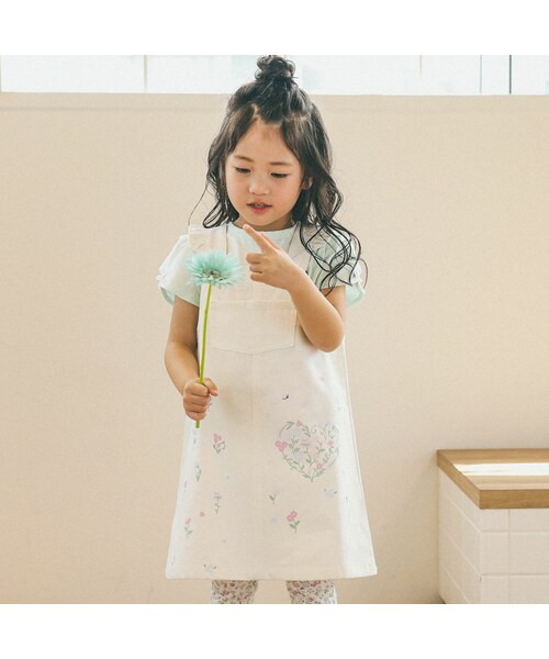 前身頃にちりばめられたお花のプリントがキュートなジャンパースカート。 肩紐にあしらったフリル、色鮮やかなお花のプリントでカジュアルなデザインになりがちなジャンパースカートに女の子らしさをプラスしたガーリーなアイテムに仕上げました。 お花に誘われたミツバチさんもさりげなくプリントされているよ。 見つけられたかな?? 印象的なデザインになっているのでシンプルなTシャツとのコーデがオススメ。 足元はお花柄のレギンス(1809-52533)を合わせて春夏らしいお花いっぱいコーデの完成☆ 華やかなプリントのジャンパースカートを着て春夏のお出かけを楽しんでね。 合わせやすいオフホワイトとデニム調のブルーの2色展開です。 胸ポケットあり 2023年春夏女の子アイテム 【 2023年 3月のテーマ / a list of things I want 】 物欲の春到来!! 暖かくなってくると眠っていたおしゃれ心もウズウズ・・・ 新生活に向けて必要なもの + いま、ほしいもの☆ ベーシックだけどおニューなアプデアイテムでテンションアップ! 【 2023 SPRING / SUMMER Fresh Up! 】 ベーシックがいいけど新しいものが欲しい! 何かちょっと違うかわいく、ときめく部分が欲しい! 2023年の春夏はときめきを具現化させたベーシックだけどおニューなアプデ商品を展開します。