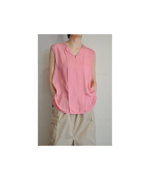 アセテート素材を使用したシンプルで使いやすいノースリーブブラウス。 程よいV開きでジャケットのインナーにもOK。 少し肩にかかるラインで1枚でも二の腕が気になりにくい仕上がりに。 柔らかい素材感でインしても腰回りも気にならないアイテムです。 ●商品一覧トップページはこちら↓ http://urx3.nu/LHHy