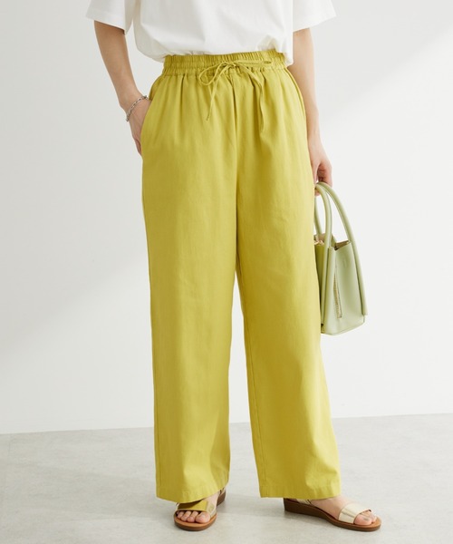 スタイリングにリラックス感のある雰囲気をプラスするパンツ。ゆったりとしたワイドシルエットで、脚のラインを程よくカバーしてくれます。印象の異なるバリエーション展開にも注目◎様々なトップスと合わせやすく、幅広いコーディネートで活躍してくれるアイテムです。透け感[無し]Ecru(生成)は[やや有り] 裏地[無し] 伸縮性[無し] 光沢感[無し] 生地の厚さ[普通] 付属品[無し] ポケット[有り]前2つ 後1つ●製品寸法:F:ウエスト[ゴム仕様]66cm ヒップ98cm 総丈97cm 股下67cm わたり周り33cm 裾幅25cm備考: