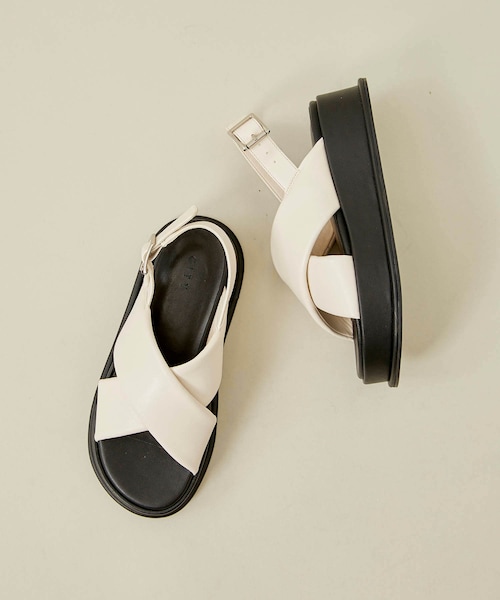 ボリュームソールでスタイルUP効果抜群!STUDIOUS ORIGINALの今期イチオシサンダル〈デザイン〉・ボリュームのある厚底がポイントのストラップサンダル・全体的に厚さがあり傾斜が少ないやめ、ヒールが苦手な方でも簡単にスタイルアップが図れます・かかと部分はゴム仕様のベルト付きなので、細やかなサイズ調整が可能・ぽってりとしたクロスデザインがキャッチーかつ、しっかりとしたホールド感で歩きやすく脚をきれいにみせてくれます・インソールはクッション性があり、長時間履いていても疲れにくい・ヒール4.5cmで歩き