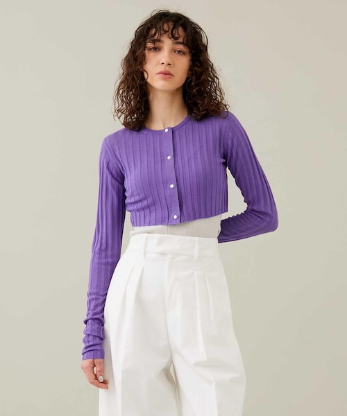 〈デザイン〉・ショート丈のリブニットカーディガン。・短い着丈と長めに設定された袖丈がポイント。〈素材〉裏地:なし光沢感:なし透け感:あり伸縮性:ありINSCRIRE岡ゆみにより2017年に設立された日本のファッションブランド。ブランドネームの“INSCRIRE”を直訳すると「刻み込む」や「書き込む」といった意味。デザイナーの岡ゆみかが“いいな”と思ったものを自分や人々のワードローブに刻み込むようなブランドにしたい、また人々に“いいね”と思ってもらえるようなブランドにしたい、という願いが込められている。メー