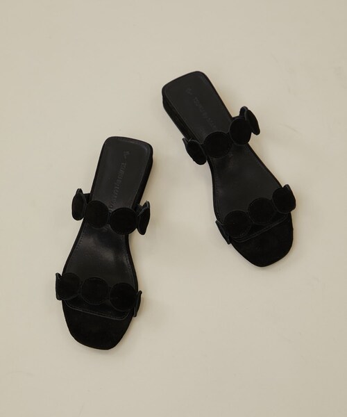 〈デザイン〉・キャッチ―なモチーフが目を惹くミュールサンダル・二本のストラップでホールド感もあり、低めのヒールで歩きやすい一足・柔らかい羊皮を使用した軽い履き心地メーカー品番:WW-1239680