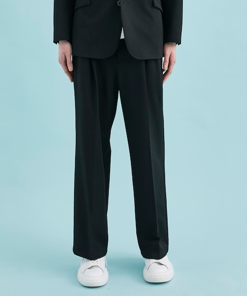 〈素材〉・透け感 なし・光沢感 なし・伸縮性 縦横有り・素材感 柔らかい ・厚み 普通〈シルエット/デザイン〉尾州産のライクラストレッチ素材使用ジャージのような柔らかい伸縮性を持ちながらウールの見た目を持っています。ワイドなストレートシルエット。