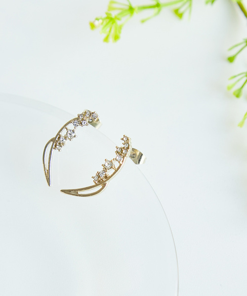 横顔を印象づける縦長フラワーピアスがお目見え。 【デザイン・シルエット】 ・すずらんの花を模ったメタルモチーフピアス。 ・縦長フォルムが特徴的な一品。 【カラー】 ・ゴールドのみの展開。 【スタイリングポイント】 ・フラワー柄のウェアとリンクさせるとプレイフルに。 ・大人なロングヘアにもベストマッチ。 ※撮影時の光、お使いのモニター環境によって色の見え方が違う場合がございます。