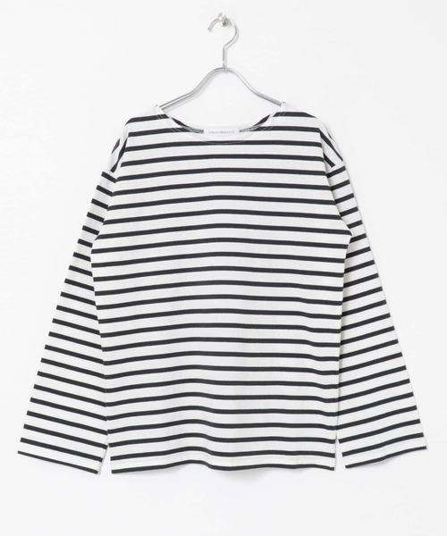 【ワードローブに1枚は欲しい、万能ボーダーカットソー】 少しドライタッチな度目が詰まったさらっとした生地を使用したボーダーカットソー。シルエットはシンプルですが、袖がストレートシルエットで袖丈も少し長めに設定。衿ぐりはすっきりしたボートネックで、コーディネートしていただきやすいデザインに。 1枚ではもちろん、ジレとの合わせや羽織のインナーにも、マルチに活躍するアイテムです。 POINT ・着やすい綿100% ・程よい生地の厚さ ・やさしい雰囲気のBEIGE 、王道のBLACK 、爽やかなICE GREENの3色展開 COORDINATE ボトムを選ばず何とでもバランス良く合わせていただけます。 ベストやジレとのしゃれ感のあるスタイリングや羽織りやジャケットのインナーとしても◎ ※商品画像は、光の当たり具合やパソコンなどの閲覧環境により、実際の色味と異なって見える場合がございます。予めご了承ください。 ※商品の色味の目安は、商品単体の画像をご参照ください。 ▼お気に入り登録のおすすめ▼ お気に入り登録商品は、マイページにて現在の価格情報や在庫状況の確認が可能です。 お買い物リストの管理に是非ご利用下さい。 ----------------------------- 透け感:ややあり 伸縮性:ややあり 裏地:なし 光沢:なし ポケット:なし -----------------------------