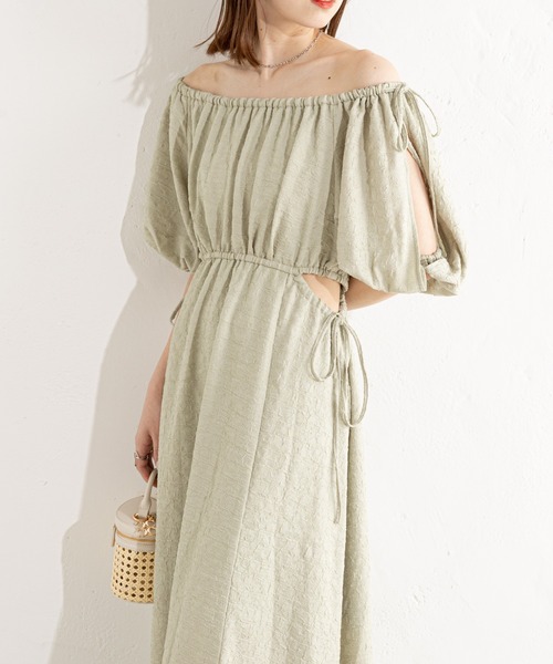 ヘルシーな肌見せができるデザインワンピ▶︎商品ポイント・ジャガード素材が1枚で着映えするデザインがトレンドライクなワンピース。肩スリットとウエストのカットアウトのデザインが程よい肌見せで女性らしく着こなしていただけます。・ウエストが絞られているのでスタイルも綺麗に見せてくれます。ウエスト部分はゴムなのでリラックスして切れるのも嬉しいポイント。▶︎スタイリングポイント・クルーネックとオフショルダーの2wayで着ていただけるので春から夏まで長いシーズン楽しんでいただけます。・小物はスポサンやナイロンバッグなどでスポーティーにまるもるのが◎・柔らかい素材なので春アウターも着やすいです。▶素材・洗濯表示素材比率:表地 ポリエステル100% / 裏地 ポリエステル100% 洗濯:手洗い可※摩擦や、汗や雨等で濡れた時は他の衣類や下着等に色移りする可能性がございますので、十分ご注意ください。……………………透け感:なし厚さ:★★☆☆☆伸縮性:なし裏地:ありポケット:なしファスナー:なし……………………※詳しいお手入れ方法は商品タグをご参照ください。※お洗濯や着用時の引っ掛けには十分にご注意ください。--------------------------------------------▼お気に入り登録のおすすめ▼ハートをクリックしてお気に入りに登録すると完売カラーの再入荷や残り1点の通知、セールの通知を受けとることができます。▼ブランドのお気に入り登録▼新商品や再入荷、セール通知やショップのおすすめトピックスなど、いち早くブランドの情報を受け取ることができます。--------------------------------------------※商品について・サイト上のカラー名と、お届け商品に記載されているカラー名が異なる場合がございます。・商品の色味は、撮影場所や光のあたり具合などにより色味が違って見える場合がございます 。また、お客様のお使いのPCのモニター環境などにより色味が違って見える場合がございます。予めご了承の上ご注文下さい。・セールは予告なく終了させていただく場合もございます。※商品ページでは、遅延などの影響も考え、お届け予定時期を少し先に設定させていただいております。予約商品は商品ページに記載しているお届け予定時期よりも早いお届け予定になる場合がございますので、予めご了承ください。※返品・キャンセルについて・着用、洗濯後の返品、交換は致しかねます。・商品到着後、着用前に商品を確認して頂きますようお願い致します。※画像の商品はサンプルです。実際の商品と仕様、加工、サイズ、素材が若干異なる場合がございます。※ご注文いただいた予約商品のお届け時期の確認は、注文履歴ページより行えます。