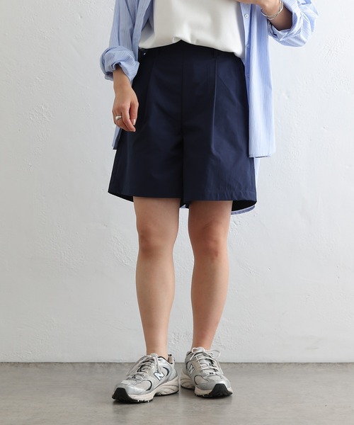 【程よい短さのリラックス感あるショートパンツ】 フロントに入れたタックデザインが腰回しを綺麗に見せてくれる1枚。 ややフレアになったシルエットが女性らしさをプラス。 後ろウエスト部分はゴム仕様になっており、着心地らくちんです◎。 しっかりした素材なのでデイリー使いだけでなく、アウトドアシーンにもオススメです。 【商品ポイント】 ・女性らしいややフレアシルエット ・後ろポケットはごわつきにくいフェイクポケット ・ウエストはバックゴム仕様 ・すっきり見えするフロントのタックデザイン ・ウエスト調整可能なベルトループ付き ---------------------------------------------------- ■商品特徴 洗濯方法:洗濯機洗い可(弱) 裏地 :なし 透け感 :なし 伸縮性 :ややあり 光沢感 :なし 生地の厚さ:普通 ---------------------------------------------------- ■素材 本体:ポリエステル100% ---------------------------------------------------- ※着用、お取り扱いの際は、商品についている品質表示とアテンションタグを必ずご確認下さい。 ※商品タグに記載されている商品名がWEBでの表記名と異なる場合があります。 ※実際の商品と仕様、加工、サイズが若干異なる場合がございます。 ※照明の関係により、実際よりもやや明るく見える場合がございます。 またパソコンなどの環境により、若干製品と画像のカラーが異なる場合もございます。予めご了承くださいませ。 【お気に入り登録】してお得な情報をCHECK!! ・「商品のお気に入り登録」で再入荷通知や、ラストの通知、セール通知も受け取ることができます。 ・「ブランドのお気に入り登録」で新商品や再入荷など、お得な情報を受け取ることができます。