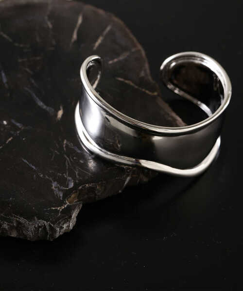 [design] 滑らかなカーブを描いたボリュームのあるメタルバングル。シンプルなスタイリングに取り入れるだけで、スタイリッシュな印象に見せてくれます。シーズンレスで使えるのも魅力。 ※モデルの着用画像の場合、光の当たり具合により、実際の色味と異なって見えることがございます。色味は、商品単体の画像をご参照ください。