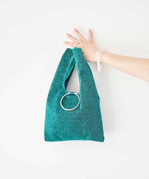 シンプルなスタイリングのアクセントに ■デザイン/素材 コロンとした形とギラギラ感がかわいいミニバッグ。 スマホ、イヤホン、ミニウォレットなど必要最低限の荷物が入るサイジングで提案しています。 リングに持ち手部分を通し2WAYでアレンジを楽しめます。 ■スタイリング 夏のシンプルスタイルのポイントになる一品。 カジュアルパーティなどの席でも使える華やかさです。 内ポケット×1 【注意点】 ※撮影商品はサンプルの為、実際の仕様と異なる場合がございます。 ※画像の商品は光の照射や角度、お使いのモニター環境により、実物と色味が異なる場合がございます。スタジオ物撮りの画像が実物の色味に一番近くなっております。 ※予約商品の場合、お届け予定はあくまでも目安となります。 生産の都合上、お届け時期が前後したり実店舗入荷時期とずれる場合がございますので、あらかじめご了承ください。 品名:ギラギラ リング ミニ Bag 品番:7681-633-0222