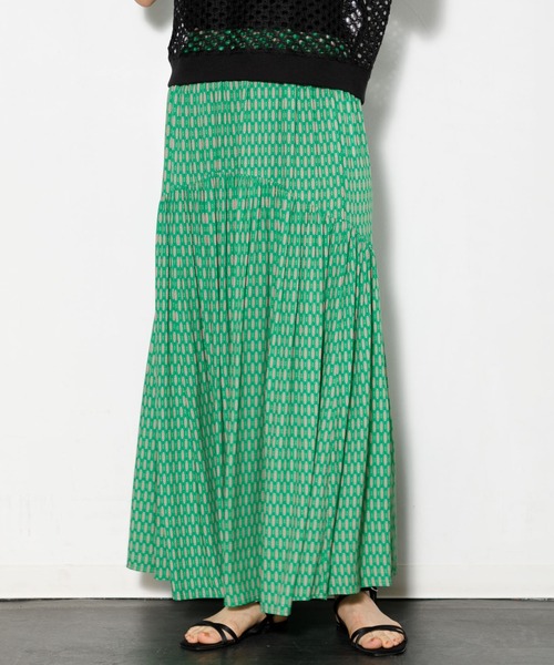 【ラクなのに女っぽさ◎。落ち感ある素材で下半身きれい見せスカート】 ラウンドしたギャザーデザインとオリジナルの小紋柄をプリントした素材が、今の気分にぴったりなスカート。サラリとした落ち感あるレーヨン素材でシーズンレスで楽しめるのも嬉しいポイントです。デザイン性もありながら身体のラインを拾わず、きれいなラインに見せてくれます。 腰回りはすっきりと、下の切り替えのギャザー分量を多めにし重心を下に持たせることで、ボリュームのあるシルエットでもすっきりした印象です。ウエストはゴム仕様で着心地も良く、ラフに履いて頂けます。レディーなアイテムを着ない方にも、カジュアルアイテムとのスタイリングでぜひ取り入れて頂きたい一枚です。 ーーーーーーーーーーーーーー 透け感:なし 伸縮性:なし 裏地:あり 光沢:なし 生地の厚さ:普通 ーーーーーーーーーーーーーー 【確認事項】 *照明の関係により、実際よりも色味が違って見える場合があります。またお客様のパソコン・スマートフォンなどの環境により、若干製品と画像のカラーが異なる場合もございます。予めご了承ください。 *取り扱いについては、商品についている品質表示でご確認ください。 ▼この商品のお気に入り登録▼ カートボタン付近の♡をクリックして商品をお気に入り登録をすると、完売カラーの再入荷通知や、ラスト1点の通知、セールの通知などを受け取ることができます。 ▼AMERICAN RAG CIEのお気に入り登録▼ 「♡お気に入りショップに追加」をクリックすると、新商品や再入荷等、AMERICAN RAG CIEの最新情報を受け取ることができます。
