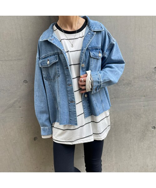 カットオフがアクセントになったデニムジャケット。 クロップド丈、裾は裁ち切りの始末で軽やかな印象のアイテム。 3rdディテールのカットオフGジャンで、ワイドめのシルエットに襟やフラップはやや太めにしてメンズライクな1枚。 様々な素材と相性の良いデニム素材はデイリーに活躍してくれるアイテムです。 ※モデル身長:161㎝ ■カラー ブリーチ ■サイズ 着丈58cm 身巾56cm 肩巾60cm 袖丈48cm 裾巾60cm ※平置きサイズです。多少の誤差は予めご了承下さい。 ■素材 綿100%