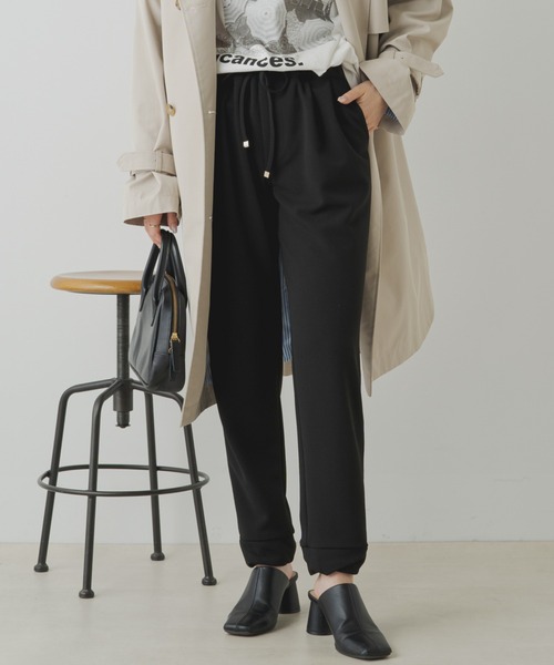 ピュアルセシン 2023 SS collection 【Town to Earth】 ◇ラフな印象になりすぎない、キレイ見えするイージーパンツ◇ ●商品のお気に入り登録 クーポンやタイムセール、再入荷通知やラスト1点などお得な情報を受け取ることができます。 ご登録をお忘れなく◎ ●デザイン ウエストドローコードのテーパードシルエットパンツ。 コード端にはゴールドの資材を配し、大人っぽさをプラス。 裾部分はくしゅっとなるように仕立て、さり気なくデザインのアクセントに◎ ツータックを入れることで腰周りにゆとりを生み出し、さり気なく腰回りをカバーします。 ジャージの様な柔らかな質感でストレッチが効いており、穿き心地は抜群。 シワも気になりにくいので、オンオフ問わず活躍する万能アイテムです。 ●カラー展開 カーキ/ブラックの2色展開。 ●素材 シワが気になりにくいストレッチ生地。 お出掛けにも、おうち時間にもぴったりの一枚です。 ●スタイリング トップスを選ばずシーンに合わせて着回していただけます。 ブラウスやジャケットと合わせて通勤スタイルから、シャツやTシャツと合わせたカジュアルスタイルにも◎ 足元もパンプスやローファー、スニーカーまで様々なアイテムと相性がいいです。 ============================ 透け感:なし 裏地:なし 伸縮性:あり 光沢感:なし 生地の厚さ:普通 【スタッフコメント】 年齢:20代後半/身長:158cm/普段着用サイズ:Mサイズ サイズ感:窮屈感はなく、程よく身体に沿うサイズ感でした。 素材感:伸縮性があるので動きやすかったです。 =============================== ※撮影場所やお使いのモニター環境により若干お色味が異なる場合がございます。特にロケの撮影では明るく見える傾向にございます。 ※予約商品はサンプルで撮影をしております。若干の仕様が変更になる場合がございますので予めご了承の上ご注文くださいますようお願いいたします 。