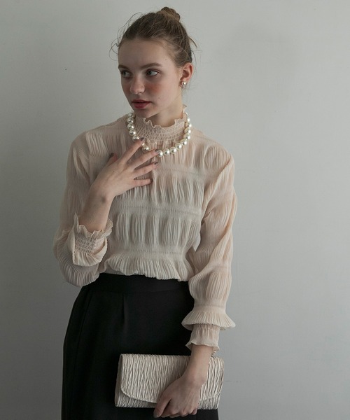 《1枚着でも、ワンピース・ジャケット・セットアップのインナー使いとしても重宝◎》 シフォン素材でふんわり立体感のあるマジョリカプリーツが目を引く“シャーリングブラウス” ==================== <オケージョン・フォーマル対応アイテム> ■結婚式や二次会、パーティーなどの《オケージョンシーン》 ■ちょっとした会食やビジネスなどの《フォーマルシーン》 「こんなのが欲しかった…」が叶う“マジョリカプリーツ シアープルオーバー” ==================== ■POINT ・1枚着/インナー使いが叶うこだわりトップス ・ハイネックデザインでお顔周りを華やかに◎ ・オケージョン/フォーマルシーンにぴったりなマジョリカプリーツ ・シフォン素材の程よいシアー感が上品な印象に ・インでもアウトでも使いやすい程よい丈感 ・1枚で着てもサマになるシャーリングデザイン ・やや微光沢の、落ち感のある素材感 ・伸縮性のある素材感でストレスフリーな着心地 ---------- 透け感…あり 伸縮性…なし 光沢感…ややあり 生地の厚さ…薄手 洗濯方法…液温は40度を限度とし、洗濯機で非常に弱い洗濯が可能 ---------- ■取り扱い方法 タンブラー乾燥は避けて自然乾燥をしてください。 クリーニングネットを使用して下さい。 色落ちの可能性がありますので他の洗濯ものと一緒に洗わないでください。 ※取り扱いについては、商品についている品質表示でご確認ください。 ■スタッフ着用レビュー 162cm/FREEサイズ着用 オケージョンシーンでのドレッシーな装いにピッタリな、シアーインナープルオーバーです。 とにかく伸縮性のある素材なので、幅広い体型の方に着用いただけると思います! ≪お買い物をお楽しみいただくために≫ ▼商品のお気に入り登録 完売カラーの再入荷通知や、ラスト1点の通知、セールの通知も受け取ることができます。 ▼ブランドのお気に入り登録 新商品や再入荷等、いち早くブランドのお得な情報を受け取ることができます。