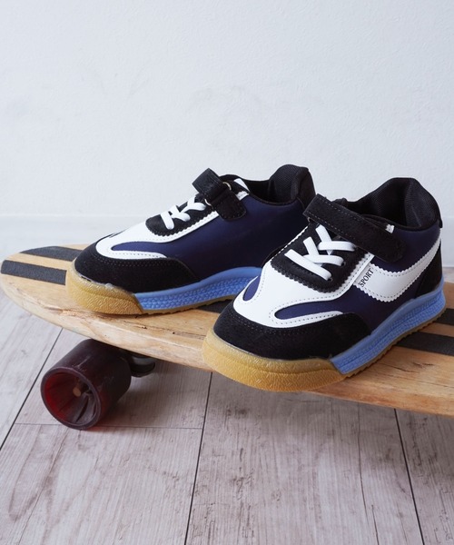 【 Bambin / ボンバン 】 配色 デザイン キッズ スニーカーカジュアルに仕上がるキッズスニーカー♩配色切替が目を引くスポーティーなスニーカーです。履くだけで旬スタイルになるデザインソールで足元にボリューム感がプラスできるので、レギンスやショートパンツスタイルにメリハリ感がでます。女の子ならスカートやワンピースを合わせるのも可愛くておすすめ。カジュアルになりすぎないデザイン&素材なので、通園・通学用にはもちろんのこと、おでかけ用としても活躍してくれます。ソール部分はラバーなので柔らかく、歩きやすさ◎靴ひも部分はマジックテープ仕様のため、大きく広げられて脱ぎ履きのしやすさも◎お子さまもママも嬉しいデザインの1足となっております。※撮影・モニター環境等により実際の商品の色味と異なって見える場合がございます。---------------------------------------【 Bambin 】フランス語で“ちびっこ”の意味。ベビー&キッズのお洋服や雑貨を中心に展開したキッズブランド。“ままとこどもの笑顔に寄り添いたい”そんな思いから誕生した【 Bambin 】育児を楽しくするお手伝いができますように。---------------------------------------【インフォメーション】◆商品のお気に入り登録完売カラーの再入荷通知を受け取ることができます。ぜひご登録ください♪◆ブランドのお気に入り登録新商品や再入荷などのお得情報を受け取ることができます。ぜひご登録お願いします