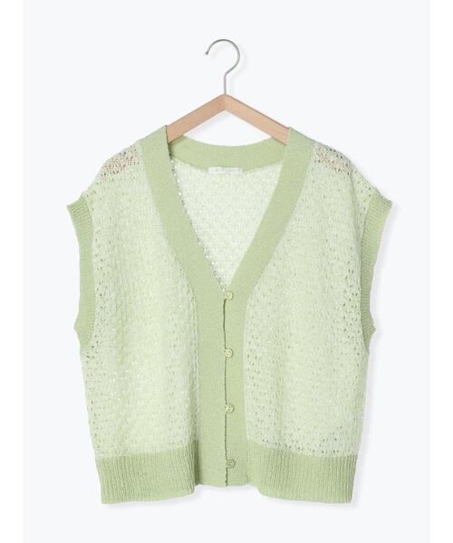 透かし編みがスタイリングに抜け感を演出するベスト。配色デザインで、メリハリのあるシルエットを作り出します。ざっくりとしたVネックが、コーディネートをすっきりと見せてくれるのもポイント◎ワンピースやブラウスなど、幅広いトップスと相性がよいのでアクセント使いしやすいアイテムです♪ ※商品画像は、撮影環境やお客様のご利用のPC・スマートフォンのモニター環境などにより実物と色味に差異がある場合がございます。
