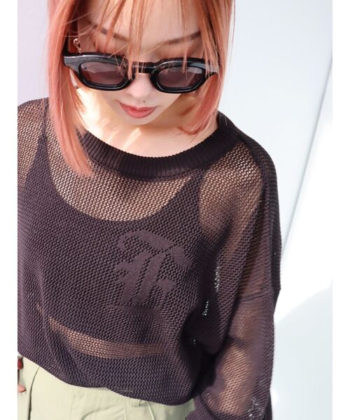 ■デザイン 透かし編みのニットにジャガード編みのロゴを組み合わせたニットです。 胸元とバックにロゴが入っています。 ■スタイリング ワイドボトムやパラシュートパンツにゆるくタックインして着用するのがおすすめです。 ワンピースの上から羽織った女性らしいスタイルも。 -------------- 透け感:なし 裏地:なし 生地の厚み: 伸縮性:なし -------------- 透かし編みとロゴジャガードを組み合わせたニットです。 カジュアルなデザインで程よい肌見せができるトップスになっています。 胸にはEVRISのEの文字、バックスタイルにはBonheur(喜び)というロゴが入っています。