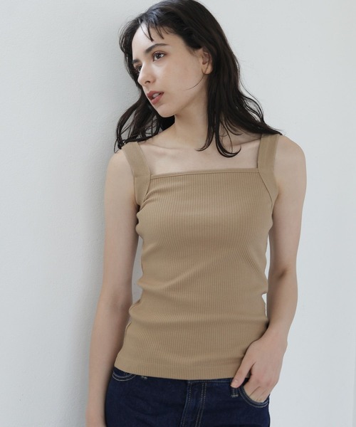 ワイドデザインのストラップが新鮮な、カットソーインナー。キャミソールとタンクトップのいいとこ取りをした、中間的なデザインです。【素材】凹凸感のあるテレコ素材を使用。伸縮性が高く、フィット感にも優れています。ほどよい厚みがあり、ボディラインをひろいにくい素材です。【スタイリング】華奢すぎず、カジュアル過ぎないので、どんなアイテムのインナーにも合わせやすいアイテムです。