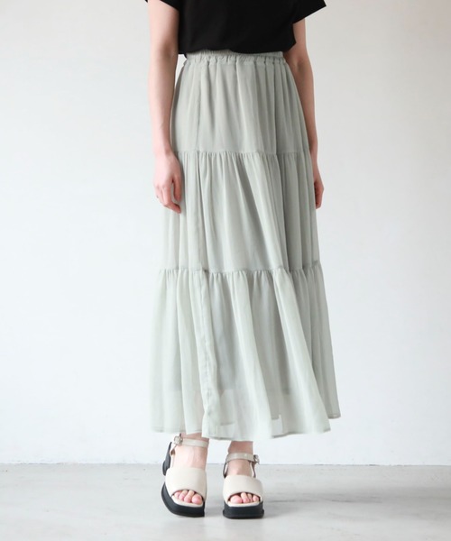 ■今季のマストバイスカート!■ 今季トレンドのティアードスカートは必ず一枚は欲しいアイテム。 サラッとした生地で春から夏にかけて着用可能。 軽い生地感でふんわりとした動きをプラスしてくれます。 3段のティアードはボリュームが出過ぎず、 ストンとしたスッキリとしたシルエットにも。 裏地付きなので透けを気にせず楽しんで頂けます。 Tシャツやゆったりシルエットのシャツを合わせたりと、 カジュアルにも大人っぽくもスタイリング出来る万能スカートです。 ーーーーーーーーーーーーーーー 透け感:ivory若干あり 裏地:あり 伸縮性:ウエスト部分ゴム 光沢感:なし 生地厚さ:普通 洗濯方法:洗濯可 ※詳しいお手入れ方法は商品についているタグをご覧ください ーーーーーーーーーーーーーーー ※ご利用のモニター環境により、実際の色味と多少異なる場合がございます。 … information … 欲しいitemをお気に入り登録(♡マークをclick) ・お買いのがし対策…完売itemの再入荷やラスト1点の情報をお知らせ ・欲しいitemをお得にget…pricedownになったらいち早くお知らせ ・スムーズ検索…ZOZOのお気に入りアイテムページで簡単checkできるから、再検索不要♪