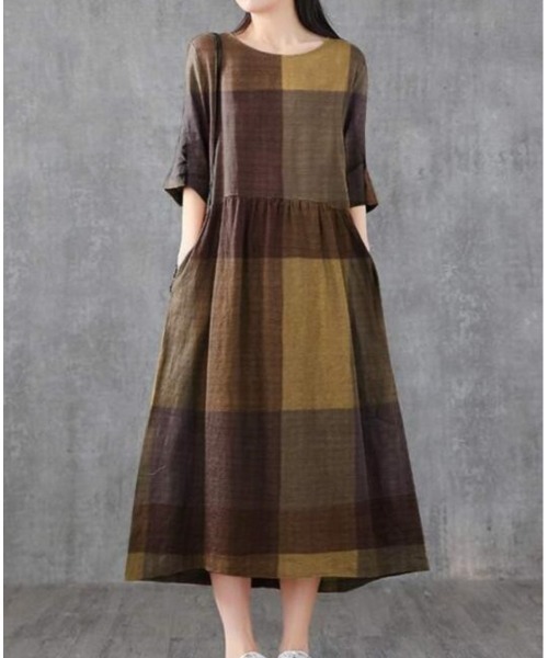 春夏シーズンで活躍するフレアーワンピースです。オフィースやカジュアルにも着まわし抜群のアイテムですカーディガンやデニム、テーラードジャケットなどを さっと羽織るだけで旬のスタイリングが完成する注目の大柄チェックアイテム。大人カジュアルに着ていただくのが◎