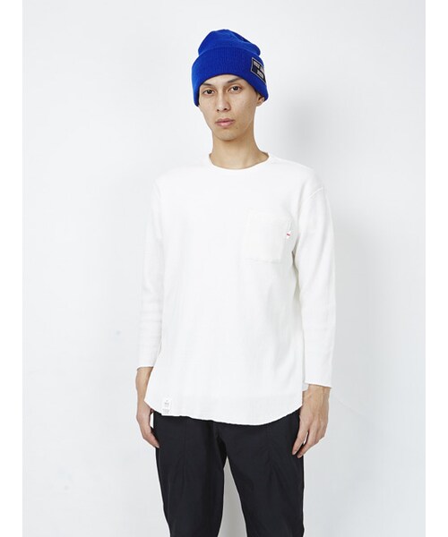 ■サーマルです。8分袖の胸ポケット付きサーマルになります。裾がラウンドになっており、着丈が長めになっているのでインナーで使用する際に裾が出てアクセントとなるようデザインされています。また、フラットシーマの縫製により非常に優れた着心地になっています。袖口、裾はロック始末になっています。