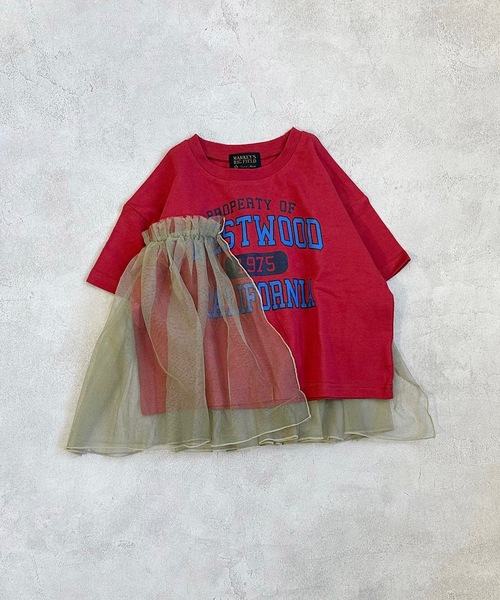 【BIG FIELD】 チュールがかわいい甘辛Tシャツ♪ ショート丈のTシャツに、チュールが目を引きます。 フロントの半分までチュールがぐるりと贅沢に縫い付けられていて 動きのあるアイテムでとってもカワイイ! フロントのカレッジロゴとガーリーなチュールのバランスが◎ デニムと合わせるのもオススメです。 カラーは3色ご用意しています。