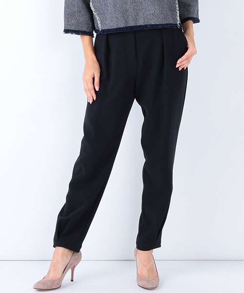 程よく力の抜けた大人のパンツスタイルにおすすめ! 地厚なトリアセ・ポリエステルの混紡素材を使用。程良い張りと柔らかさがあり、綺麗な落ち感が特徴です。裾に施されたボックスタックがデザインポイント。きちんと感がありつつ、ゆるいシルエットでリラックス感のあるパンツに仕上げました。 Model : H160(cm) Size : 36 店舗へお問い合わせの際は下記品番をお伝えください。 品番:68-23-0124-126