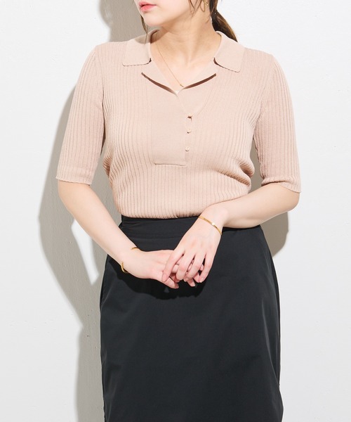 Lui's FEMME(ルイス ファム)オリジナル23SSコレクションより、リブニットポロトップスの登場です! 【素材】 ややしゃり感のあるさらりとした肌触りで柔らかい編み上がりです。 【デザイン】 すっきりと縦長ラインを作るリブ編みで仕上げたポロニット。トレンドのポロ衿付きでややコンパクトな着丈とシルエットが今の気分にマッチする1枚です。襟元に抜け感があり女性らしさをプラス。ややシャリ感のある素材でほど良く厚みがあるので身体のラインを拾いにくいため着心地◎デイリーに着やすいリラックス感のある着心地です。カラー展開豊富で定番のオフ、ブラックに加え、ポイントカラーになるレッド、女性らしい印象のベージュでご用意。カットソーを合わせた時とはまた違ったきちんと感のある雰囲気にまとまる、買い足しておきたいアイテムです。 【コーディネート】 シンプルなデザインなので、デニムやスラックスなどマニッシュなアイテムと好相性です◎あえてフェミニンなフレアスカートで合わせて、テイストのバランスを組み合わせるのも今年らしい着こなしに◎コンパクトなニットはボリュームのあるボトムスと合わせたメリハリのある着こなしもおすすめ!手洗い可能でご自宅でのイージーケアが出来るのも嬉しいポイントです。夏までロングシーズン活躍しそうなアイテムです。 【ブランド】 Lui's FEMME(ルイス ファム) 凛とした芯のある女性。 自立した、女性のワードローブをイメージ。洗練されたかっこよさの中に、女性らしさ・かわいさ・セクシーさを持つ。自分自身のスタイル(自分らしさ・個性・生き方・感覚...)を表現できるひとつの手段としての服。肩肘張らない、心地よいリラックス感のあるスタイルを上質な素材、優雅なシルエットで提案。 ********************** 透け感:なし 裏地:なし 伸縮性:あり 光沢感:なし 生地の厚さ:薄手 お手入れ:手洗い可 ********************** 【注意事項】 ※画像の商品はサンプルです。実際の商品と色味、仕様、加工、サイズ、素材等が若干異なる場合がございます。 ※工場の生産の都合上、納期が変更になる場合がございます。発送日の前後については予めご了承ください。 ※入荷状況により、お客様への発送が店頭販売より遅れる場合もございます。 ※商品を使用前に、タグ等に記載されている「取り扱い上の注意書き」、「洗濯表示」を必ずご確認ください。 ※商品画像は、光の当たり具合やパソコンなどの閲覧環境により、実際の色味と異なって見える場合がございます。予めご了承ください。 ■商品のお気に入り登録(ハートマーク) 完売カラーの再入荷、ラスト1点の通知、セールの際の通知を受け取れます。 ■ブランドのお気に入り登録 新商品の入荷など、いち早くブランドのお得な情報を受け取れます。 是非ご利用ください。