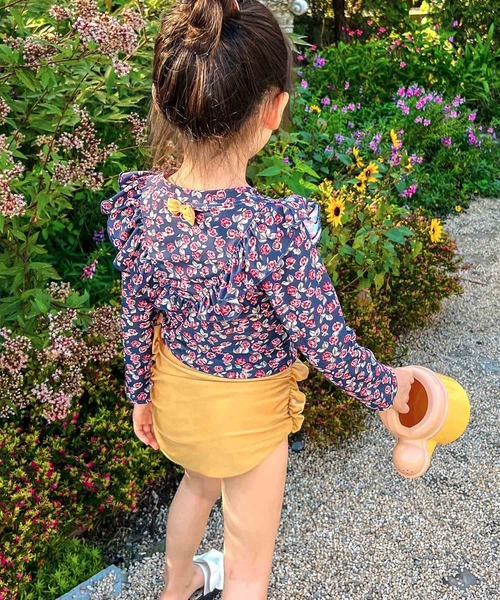【OSYAREVO SWIMWEAR】 ■ ポイント 草木感のある小花柄と甘いフリルでガーリーに仕上げる子ども水着。 ラッシュガードのような長袖タイプなので、紫外線からの直接の刺激を遮り、程良いスポーティ感を演出します。 トップスは、肩から胸元にかけてぐるっとフリルが施されており、小さなリボンでアクセントをON。 ショーツのフリルも一体感をうみ、サイドギャザーが着心地の良さを実現します。 露出を抑えたデザインなので、活発に動き回っても着崩れせず、洋服感覚で安心して着られます。 ■ セット内容 【1】トップス 【2】ショーツ ■ サイズ 90cm/100cm/110cm/120cm/130cm ・サイズは詳細をご確認ください。 【参考身長】※下記のサイズはあくまでも目安としてご覧ください。 90cm(75-85cm) 100cm(85-95cm) 110cm(95-105cm) 120cm(105-115cm) 130cm(115-125cm) ■ 追加詳細 透け感なし 伸縮性若干あり パッド/パッドポケットなし ▼ お取り扱い方法 ・お洗濯は、真水で手押し洗いをお勧めします。 ・ドライヤーや乾燥機のご使用はお避け下さい。 ・濡れたままビニール袋に密封し長時間放置しますと、色移りをする可能性がございます。 車のトランクなど暑い場所に長時間放置すると熱で色落ちの原因になります。 同商品・同サイズにおきましても、納品の時期やロット・染色によって素材感や風合いなどが異なる場合がございます。 また、生産の過程上寸法に誤差(2-5 cm)が生じる場合がございますが、品質やご着用に差し控えないものをお送りいたしております。 ▼商品のお気に入り登録 ハートを押してお気に入り登録をしておくと、再入荷・セール・ラスト1点...etcを通知でお届けします! ▼ブランドのお気に入り登録 新商品やクーポン配布などのお得な情報を受け取ることができます。 体型カバー キッズ フラワー柄 ロングスリーブ フリルスイムウェア 長袖ラッシュガード ショーツセット セパレート水着 上下セット 可愛い 子供水着
