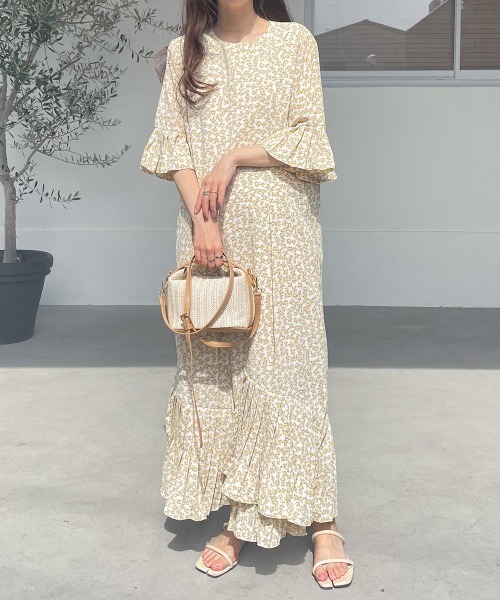 ●Bab● ■POINT 大人っぽく着用頂ける小花柄のワンピース。ストンと落ちたシルエットで身体のラインを拾わず、華奢見えも◎五分丈袖で気になる腕回りをしっかりカバーしてくれ、裾に向かって広がったベルスリーブで、手首回りをすらっと細く見せてくれます! 裾は表情感のあるアシメプリーツデザインでコーディネートのワンポイントに。カジュアルにはもちろん、お出かけの場にも使えて着回しもバッチリです。 ■FABRIC 汗ばむ季節でもさらっとご着用頂ける素材です。軽い着心地でストレスフリーなのも嬉しいポイント。 ■COORDINATE 足元は、フェミニンにパンプスやバレエシューズ合わせで女性らしい印象にしても◎スニーカーと合わせたカジュアルスタイルは今年っぽく着こなして頂けます。 ………………… 透け感:透ける可能性あり(オフホワイトは光の当たり具合により透ける可能性がございます。) 裏地:あり ………………… ※撮影環境により、多少実際のカラーと異なる場合がございます。また、携帯やスマートフォン、パソコンなどの画面上と実物では多少色が異なって見える場合がございます。ご了承下さいませ。 ※画像の商品はサンプルのため、実際の商品と若干仕様が異なる場合がございます。 ※濃色品は、過度な摩擦や濡れた状態での摩擦により、色落ち・色移りをする恐れがあります。 ※この商品は、素材の特性上、洗濯の際に多少の縮みが生じる恐れがあります。洗濯後は形を整えてから干してください。 ※その他お取り扱いに関しましては、商品に付属のアテンションタグをご覧ください。 ★商品のお気に入り登録 再入荷やラスト1点のお知らせ、セール情報などお知らせを受け取ることができます! ★ブランドのお気に入り登録 新商品や再入荷などのお得な情報を受け取ることができますので、是非ご登録ください。 ★Bab公式Instagramアカウント【bab.showroom】で最新情報をチェック!