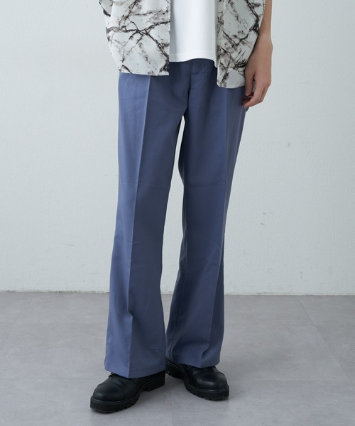 【メンズからフレアパンツが遂に登場!!】 センタープレスを入れる事で脚長効果に加え、美シルエットに仕上げたフレアパンツです。 フレアの印象がややソフトな為、フレアシルエットを試された事の無い方でも穿きやすくなっております。 レーヨンを使用することで盛夏でも涼しく穿いていただけます。 光沢感を抑えることでキレイめなアイテムだけでなく、カジュアルなアイテムとも合わせやすいです。 1サイズアップして着用することでトレンドライクなルーズな着こなしも可能です。 【商品ポイント】 ・薄すぎず厚すぎず程よい生地でロングシーズンで着用可能 ・同素材のジレとセットアップで着用可能 ・WEB限定のXLサイズ 【SET UPアイテム】 ・CMA2031407A0002 テーラードジレ ---------------------------------------------------- ■商品特徴 洗濯方法:手洗い可 裏地:なし 透け感:ややあり(アイボリーのみ) 伸縮性:ややあり 光沢感:なし 生地の厚さ:普通 ---------------------------------------------------- ■素材 ポリエステル76%, レーヨン21%, ポリウレタン3% ---------------------------------------------------- ※着用、お取り扱いの際は、商品についている品質表示とアテンションタグを必ずご確認下さい。 ※商品タグに記載されている商品名がWEBでの表記名と異なる場合があります。 ※実際の商品と仕様、加工、サイズが若干異なる場合がございます。 ※照明の関係により、実際よりもやや明るく見える場合がございます。 またパソコンなどの環境により、若干製品と画像のカラーが異なる場合もございます。予めご了承くださいませ。 【お気に入り登録】してお得な情報をCHECK!! ・「商品のお気に入り登録」で再入荷通知や、ラストの通知、セール通知も受け取ることができます。 ・「ブランドのお気に入り登録」で新商品や再入荷など、お得な情報を受け取ることができます。