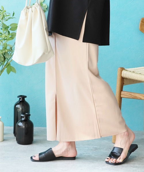 ■Point どんな季節でも着用できる、着回しやすいナロースカート♪ 安心のウエストゴム仕様で、スリット入りで動きやすく着心地の良さが魅力です! ナローシルエットでありながら適度に厚みがあるので身体のラインを拾いすぎません◎ ■Deteil 低身長さんはフルレングス/高身長さんはミモレ丈で大人っぽく着用できるロング丈です! ベーシックカラーから嬉しいトレンドカラーまで、色違いでも欲しくなるアイテムです。 毎日の着回しにはもちろん、旅行やお出かけにも♡ ※ウエストゴム仕様(69-94㎝) ■Coordinate タックインスタイルもこなれ感が出るのでオススメ! 今年のトレンドのショート丈トップスとも相性抜群です◎ ゆったりシルエットのトップス合わせで、大人カジュアルな着こなしにも。 ■■■もっとお買物をお得にお楽しみいただくために■■■ 【商品のお気に入り登録】再入荷のお知らせや、ラスト1点のお知らせ、セールのお知らせを受け取ることができます! 【ブランドのお気に入り登録】新作商品や完売アイテムの再入荷情報など、お得な情報をいち早く受け取ることができます! ※サイズは現物をスタッフが平置き採寸したものになります。 ※モデル着用写真は撮影環境により、多少実際のカラーと異なる場合がございます。 ※生産時期により若干の色ブレやサイズの変動が生じる場合がございます。 生地の素材や種類によってシワになりやすいもの、または同じ素材でも製造時期によって異なる場合がございます。予めご了承くださいますようお願いいたします。 ※ご注文いただいた予約商品のお届け時期の確認は、注文履歴ページより行えます。
