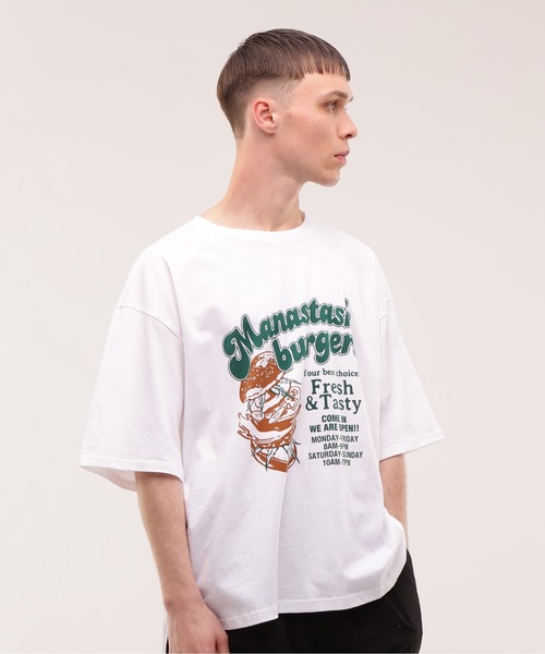 MANASTASH/マナスタッシュ/burgers tee/バーガーTシャツ 架空のハンバーガーショップを大胆にプリント。遊び心満載のMANASTASHらしい1枚です。着丈は短め、身幅は広め、サイドスリットもはいっているため1枚でサマになります。 MANASTASH/マナスタッシュ 1993年に米国シアトルで設立された<MANASTASH>。ブランド名の由来となる北アメリカ大陸の西海岸沿いを南北に走るカスケード山脈から駆け落ちるマナスタッシュ山高原は、スキーやトレッキング、マウンテンバイク、ラフティング、カヤックなど多様なアウトドアスポーツが楽しめることで有名です。創業時よりヘンプやリサイクルフリースなど環境に優しい素材を採用して最高のアイテムを作ることを理念に掲げ、旧き良きアメリカのプロダクトをデザインベースにしたライフスタイルブランドは、ファッションとカルチャーをクロスオーバーさせた新しいスタイルを提案します。
