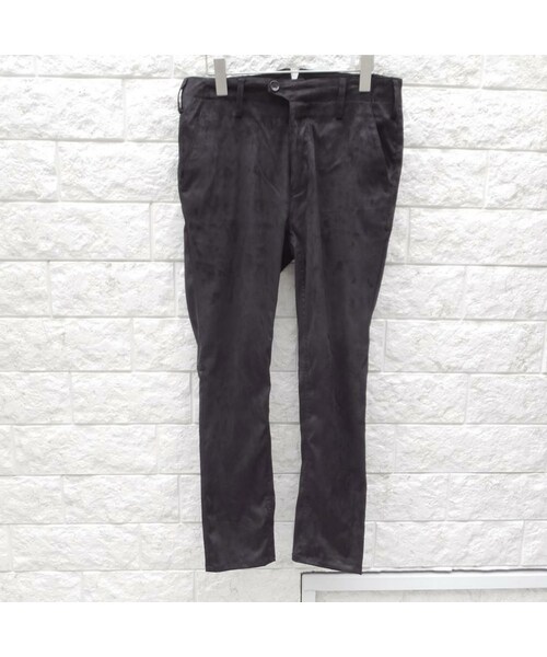 フェイクスエードテーパードパンツです。 製品染めにより独特のムラのある質感に仕上がったフェイクスエード素材を使用、 ストレッチが効いているのでスリムなシルエットながら動きやすさも確保しています。 ポケットの袋布にあしらわれたレオパード柄もポイントです。