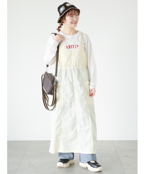 今年トレンドのシャカシャカした素材でつくった、程よいワーク感のミリタリーキャミソールワンピース。ウエストの紐を絞ることでシルエットが変わり、合わせるトップス次第でさまざまな雰囲気の変化を楽しめます◎足さばきのよいスリット入りも嬉しいポイント。 ※商品画像は、撮影環境やお客様のご利用のPC・スマートフォンのモニター環境などにより実物と色味に差異がある場合がございます。