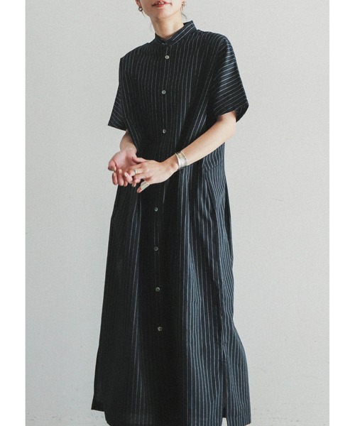 【FIL DE FER フィルデフェール】 ”ロング丈のリラクシングなシャツワンピ” コットンベースにヘンプが入ったサラリと涼しげなテキスタイル。 程よくハリがあり体から離れて風が通るような1枚です。 オーソドックスな黒のピンストライプ。 メンズライクな生地ですが、ウエストにタックを入れメリハリを作った女性らしいシルエットがポイント。 ゆったりと長いシルエットがリラクシングな印象に。 1枚でサラリと着ても映えるワンピースです。 洗濯:洗濯機使用可 ※画像の商品はサンプルです。 実際の商品と色味、仕様、サイズ等が若干異なる場合がございます。