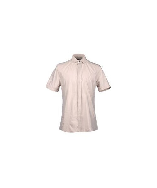 LES HOMMES Short sleeve shirts. classic neckline, short sleeves, front closure, hidden button closure, no pockets, no appliqués, back with box pleat, plain weave, solid color. 55% Cotton, 45% Silk