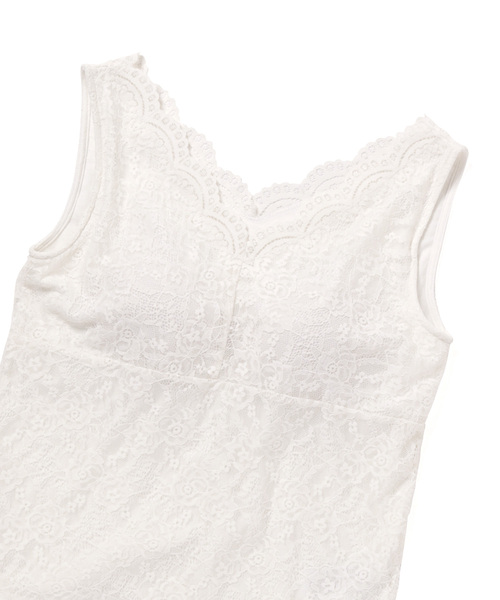 【デザイン・シルエット】・シーズンレスで活躍する、レース切り替えデザインのインナータンクトップ。・一枚で着られる、安心のカップ付き。【カラー】・ブラック、オフホワイトのモノトーン2色展開。【スタイリングポイント】・胸もとの開くニットやワイシャツなどのインに重ねて。・カーディガンを一枚で着るときのインナーにも便利。※撮影時の光、お使いのモニター環境によって色の見え方が違う場合がございます。