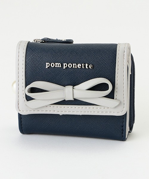 フェイクパールとリボンが上品な印象を与えてくれるミニ財布です。 飽きのこないシンプルなデザインや、裏地のさわやかなストライプがポイント。複数のカード収納のほか、コインがたっぷり収納できるのも特徴です。同シリーズのパスケースもご用意しています。