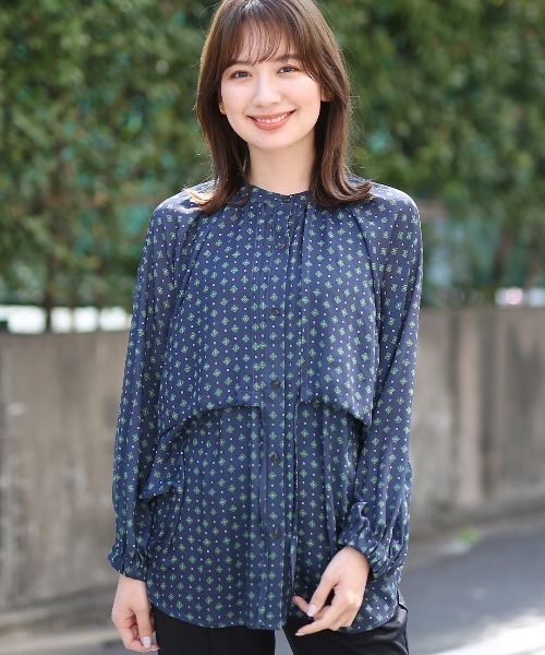 レイヤードデザインがこなれ感を漂わせる総柄ブラウス ■デザイン 小花とドットのモチーフパターンが、大人っぽい総柄アイテム。 ルーズな身幅とするりと滑らかな生地が、柔らかく女性らしい雰囲気を演出します。 クロップド丈のベストを重ね着しているような、レイヤード風の個性的なデザイン。 前のリボンは結んでも、結ばなくても、その時の気分やコーデに合わせて楽しめます♪ ■サイズ感 レディースフリーサイズ ゆったりとした身幅で、ノンストレスで着られます。 ■素材感 するっと滑らかな肌触りが心地よい、薄手の素材感。 ■スタイリング シンプルなスリムパンツと合わせれば、キレイめな大人っぽコーデが完成。 ふんわりとしたフレアスカートと合わせた、レディーなスタイリングも◎ ■カラー ベージュ/ブラウン/ネイビー --------------------------------- 透け感:透ける 伸縮性:なし 裏地 :なし 光沢 :ややあり 生地の厚さ:薄手 ポケット:なし --------------------------------- 【TITICACAのお買い物をお楽しみいただくために!】 ▼商品のお気に入り登録 完売カラーの再入荷通知や、ラスト1点の通知、セールの通知も受け取ることができます。 ▼ブランドのお気に入り登録 新商品や再入荷など、いち早くブランドのお得な情報を受け取ることができます!