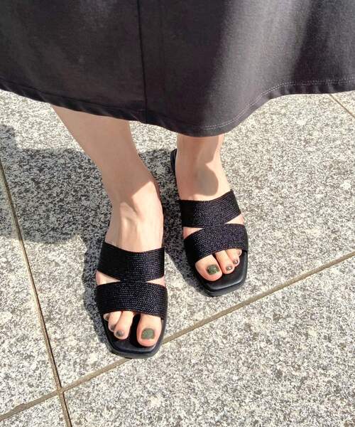 輝くメタルコードをアッパーデザインにしたフラットミュール。【デザイン】メタリックのメタルコードをテープ状に縫い合わせアッパーデザインにしているミュールサンダル。インソールもアッパーと同色に合わせ、ヒールはスクエアのローヒールをあしらっています。涼し気なカラーリングで初夏のスタイリングの格上げしてくれる1足です。【素材】ポリエステルのメタルコードを縫い合わせ、アッパー裏はジャージ素材で切り替え足あたりを良くしています。インソールには低反発クッションを敷いて、歩きやすさも◎です。ブラックとシルバーカラー、ピンクゴールドの3色展開。店舗へのお問い合わせ商品番号:C71-26014●製品寸法:02(23.5~24.0cm):ヒール高1.5cm 幅8.5cm03(24.0~24.5cm):ヒール高1.5cm 幅8.8cm備考:重量:03(24.0~24.5cm)片足約195g