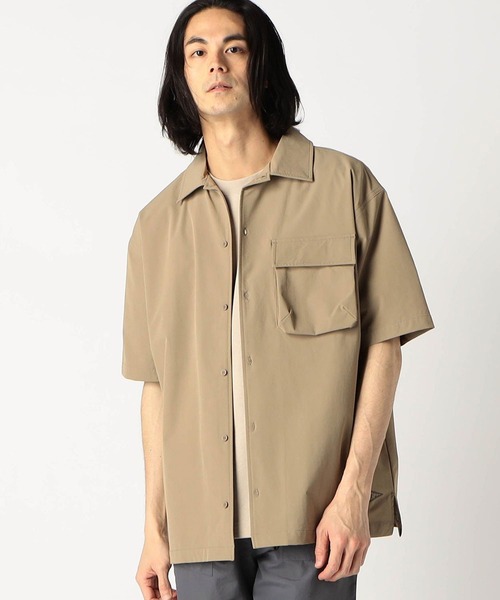 軽く肌触りの良い素材に撥水加工を加えたスポーツ、アウトドアに最適なシャツ ・デザイン ボックスシルエットで釦の閉め方でオープンカラーで着用も出来ます。 胸ポケットはマチがある立体的なフラップポケットで収納力もポイント。 汚れにくく、速乾性もあるのでスポーツ、アウトドアににもおすすめです。 裾にはオリジナルロゴをプリントしてアクセントにしています。 ・シルエットゆとりのあるサイズ感にハリのある素材感でトレンド感のある立体的なシルエットになっています。 素材にハリがあるので釦を開けて羽織って着てもきれいに見えるシルエットも特徴です。 ・ファブリック 裏面に凹凸があって肌に接触する面積が少ないのでベタ付かず快適です。 ストレッチが効いたナイロン素材に表側には撥水加工も施しているので幅広いシーンで着用出来ます。 シワになりにくいのもポイントです。 ・スタイリング夏の定番のオープンカラーなのでTシャツの上に羽織ったり、やや大きめのシルエットなので夏場はショートパンツと合わせるのもおすすめです。 ※ご家庭でのお洗濯可能な商品です。詳細、取り扱い方法は商品に付いている品質表示、アテンションタグをを御確認下さい。 ***************** 裏地:なし 伸縮性:あり 光沢感:なし 生地の厚さ:普通 透け:なし ***************** <スタッフ着用コメント>本社 Hさん身長:178cm/体重:66kg/体型:普通/普段サイズ:48(L)/着用サイズ:48(L) サイズ感:Tシャツの上から着ても程よいゆとりがある。 素材感:ハリがあって伸縮性がすごい。 着心地:軽くて肌触りが良い。