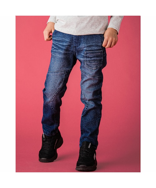 レーシングパンツから着想を得た変形切替デニム。 細身のスキニーパンツでスタイルアップが叶うロング丈のボトムスです。 スキニーシルエットの美しさを損なわないようウエストはアジャスターにし、より本確的なデニムに仕上げています。 カラー展開は、合わせやすいブラックとネイビーでの2色展開。 着回し力が高く、どんなトップスとも相性抜群! ストレッチが効いたアイテムなので、横方向によく伸び動きやすい! 元気いっぱいな男の子たちにピッタリです! デイリー使いやアウトドアにオススメの一着です◎ 【ポケット】前あり:3 後ろあり:2