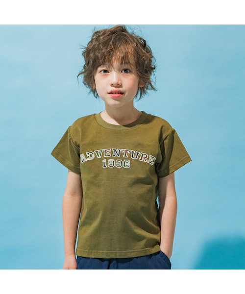 迷彩柄をスペルロゴでかたどってパッチワークしたシンプルな半袖ロゴTシャツ。 メンズライク且つベーシックなデザインで、幅広いスタイリングにご着用いただけます。 カラーはネイビー・グリーンでの2カラー展開。 天竺素材を使用しているので、通気性や吸収性も抜群♪ 元気いっぱい遊んでたくさん汗をかく暑い夏にも、さらりとご着用いただけます。 遊びや通学などデイリーユースにピッタリな一着です◎