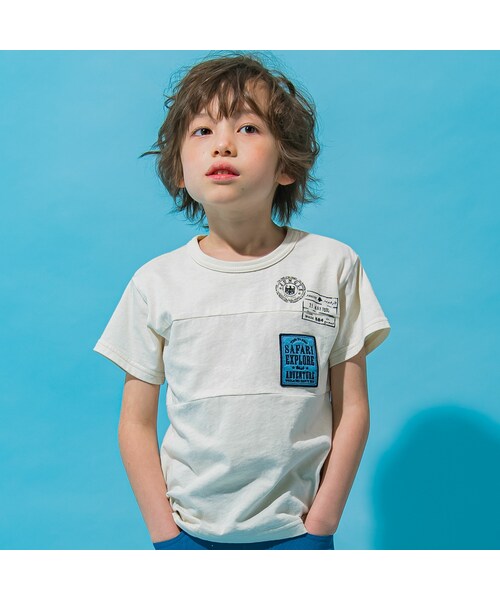 フロントを大胆に切り替え、その上から施したオリジナルワッペンがポイントの半袖Tシャツ。 ベーシックなカラー展開で夏に重宝間違いなし! どんなボトムスにも合わせやすい、使い勝手に優れたアイテムです。 カラーはオフホワイト・ブラックでの2カラー展開。 天竺素材を使用しているので、通気性や吸収性も抜群♪ 元気いっぱい遊んでたくさん汗をかく暑い夏にも、さらりとご着用いただけます。 遊びや通学などデイリーユースにピッタリな一着です◎